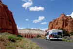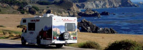 mit einem Camper oder Wohnmobil, in Nordamerika kurz RV (Recreation Vehicle = "Erholungs